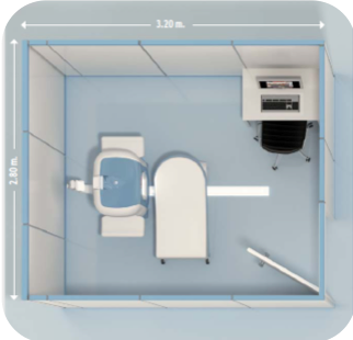 Det gir maksimal pasientkomfort, klaustrofobi er ikke et problem siden den er åpen og man trenger kun en vanlig stikkontakt for å bruke den.